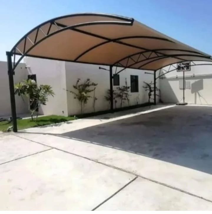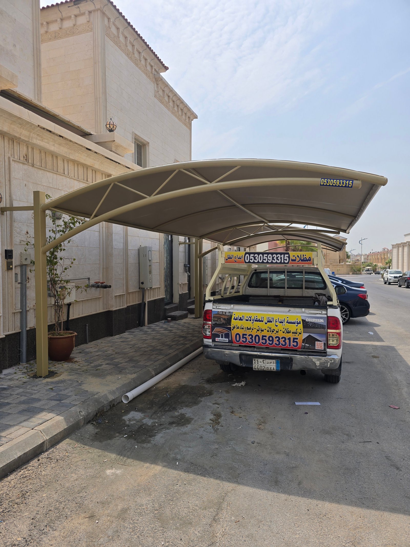 تركيب مظلات سيارات قابلة للطي أو ثابتة (مواد: قماش مقاوم للأشعة، إطارات حديد مجلفن).