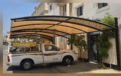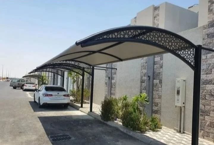 تركيب مظلات سيارات قابلة للطي أو ثابتة (مواد: قماش مقاوم للأشعة، إطارات حديد مجلفن).